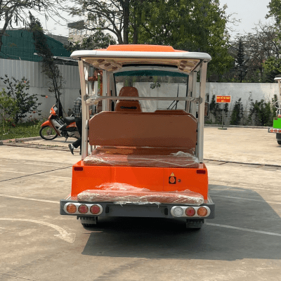 Bên cạnh đó, thiết kế của dòng xe điện chở khách 8 chỗ khá mới lạ với kiểu dáng như một chiếc xe bus mini, nhưng trông thoáng hơn và tốc độ không quá cao. Mẫu xe thích hợp sử dụng tại các địa điểm du lịch để chở khách tham quan di chuyển nhiều nơi một cách thuận tiện và tạo cảm giác thích thú khi ngồi trên xe ngắm cảnh.